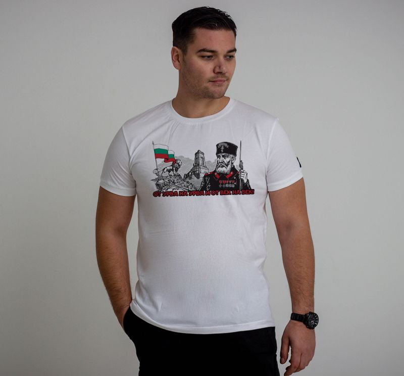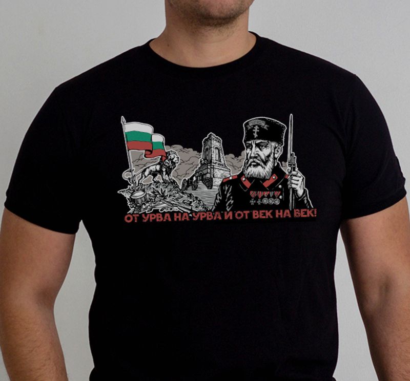 A t-shirt from urva to urva and from century to century is dedicated to one of the brightest symbols in the history of Bulgaria. Our liberation from Turkish slavery, which is one of the darkest periods for us, and the Liberation one of the brightest. The long awaited moment to call ourselves free is coming thanks to the fearlessness of our people. A symbol of these glorious times is the battle on Mount Shipka, which was extremely bloody, with an enemy many times superior, but which was repulsed only because of the indomitable courage of the defenders of the eminence. On the front of the T-shirt is depicted a Bulgarian militiaman in uniform, and behind him proudly stands the Freedom Monument, a testimony to boundless heroism. A lion, a symbol of Bulgaria and the Bulgarian fighting spirit, is painted standing proudly on the rocks, with swords and rifles at its feet. Above it flies our flag, a symbol of self-sacrifice and heroism, and below in red letters is written "from urva to urva and from age to age". Part of the poem "The Soldiers of Shipka", which the emblematic Ivan Vazov dedicates to this memorable moment. On the back is written "Bulgaria, they died for you, you were worthy of them, and they were worthy of you, mother!". Part of the poem "The new cemetery above Slivnitsa" again by the father of Bulgarian literature "Dyado Vazov". On the back is placed the Order of Courage, which complements the symbolism of courage and self-denial, a symbol that adorns the chests of thousands of Bulgarian heroes.
